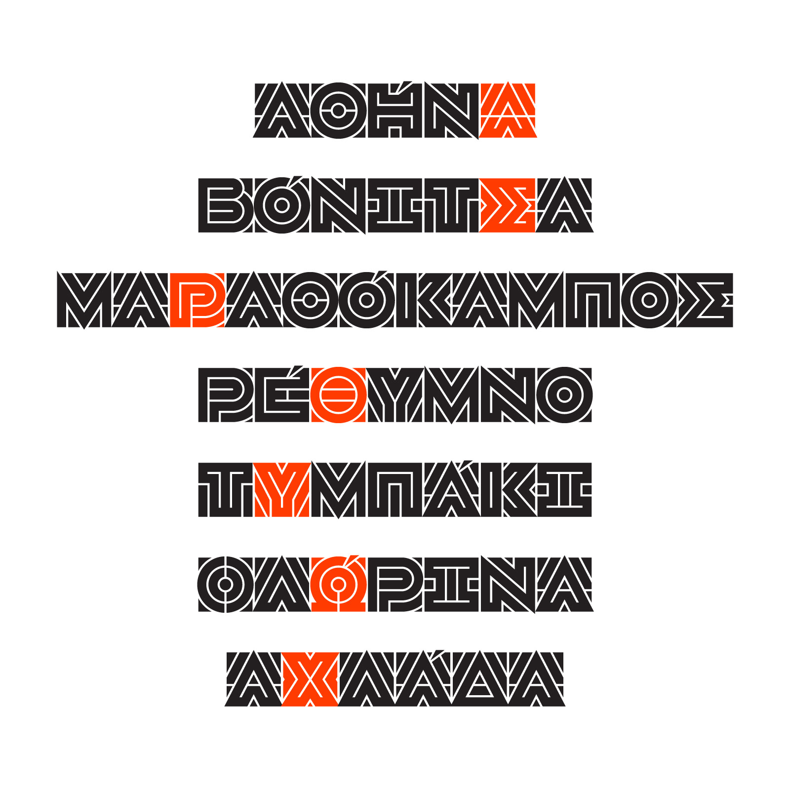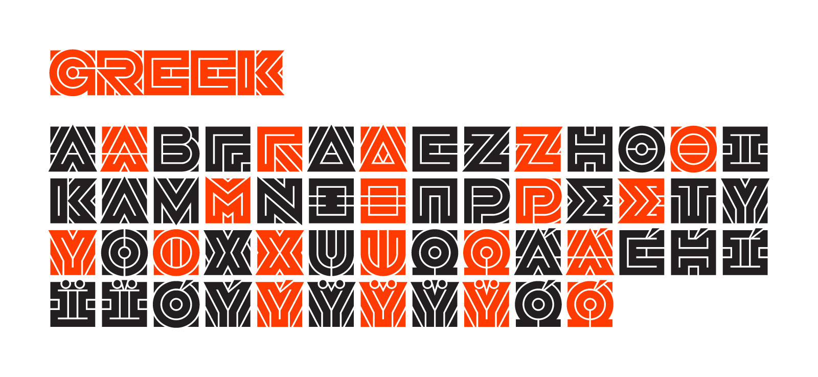 Greek, primary glyphs and Stylistic Alternates.