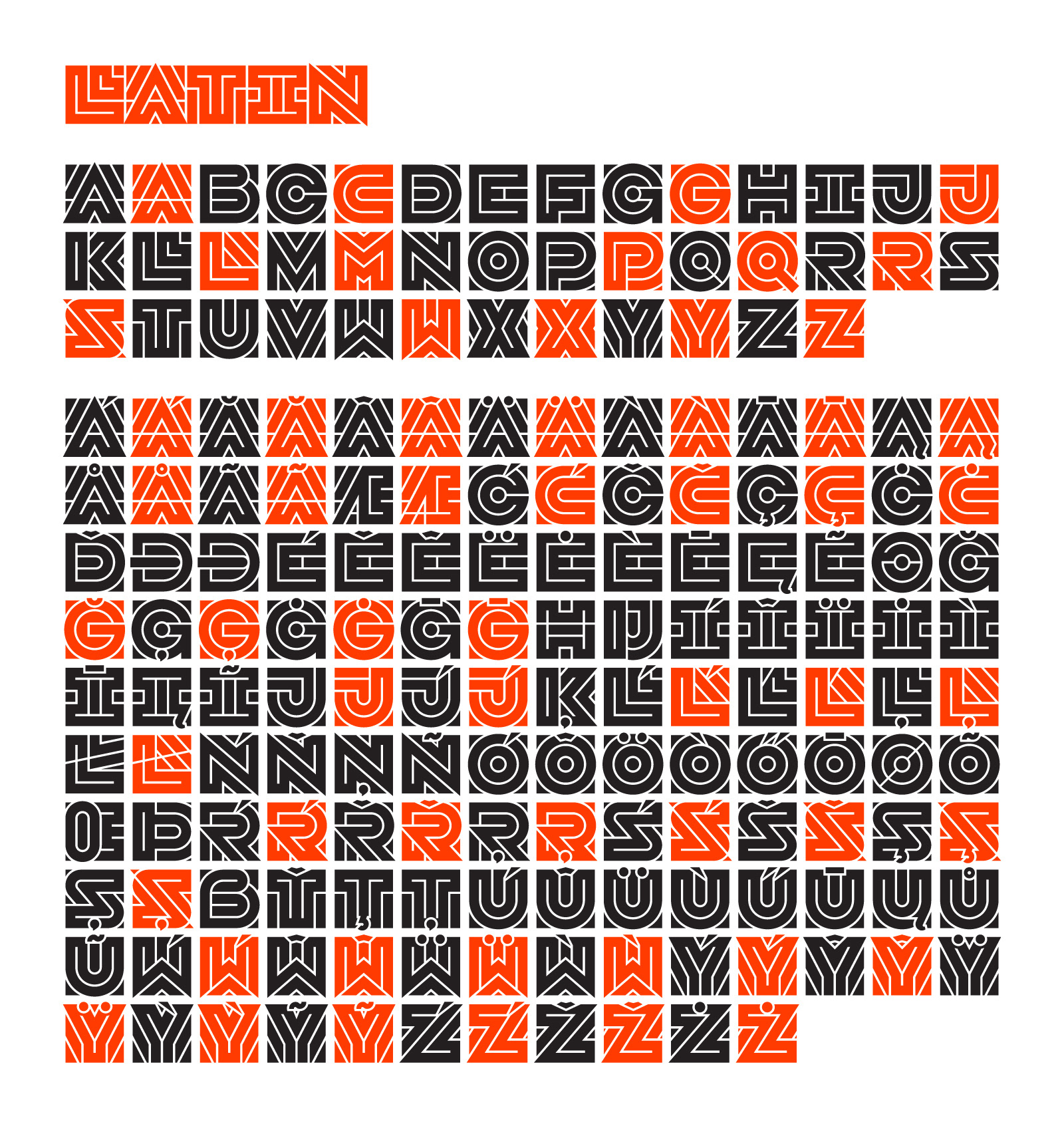 Latin (extended), primary glyphs and Stylistic Alternates.