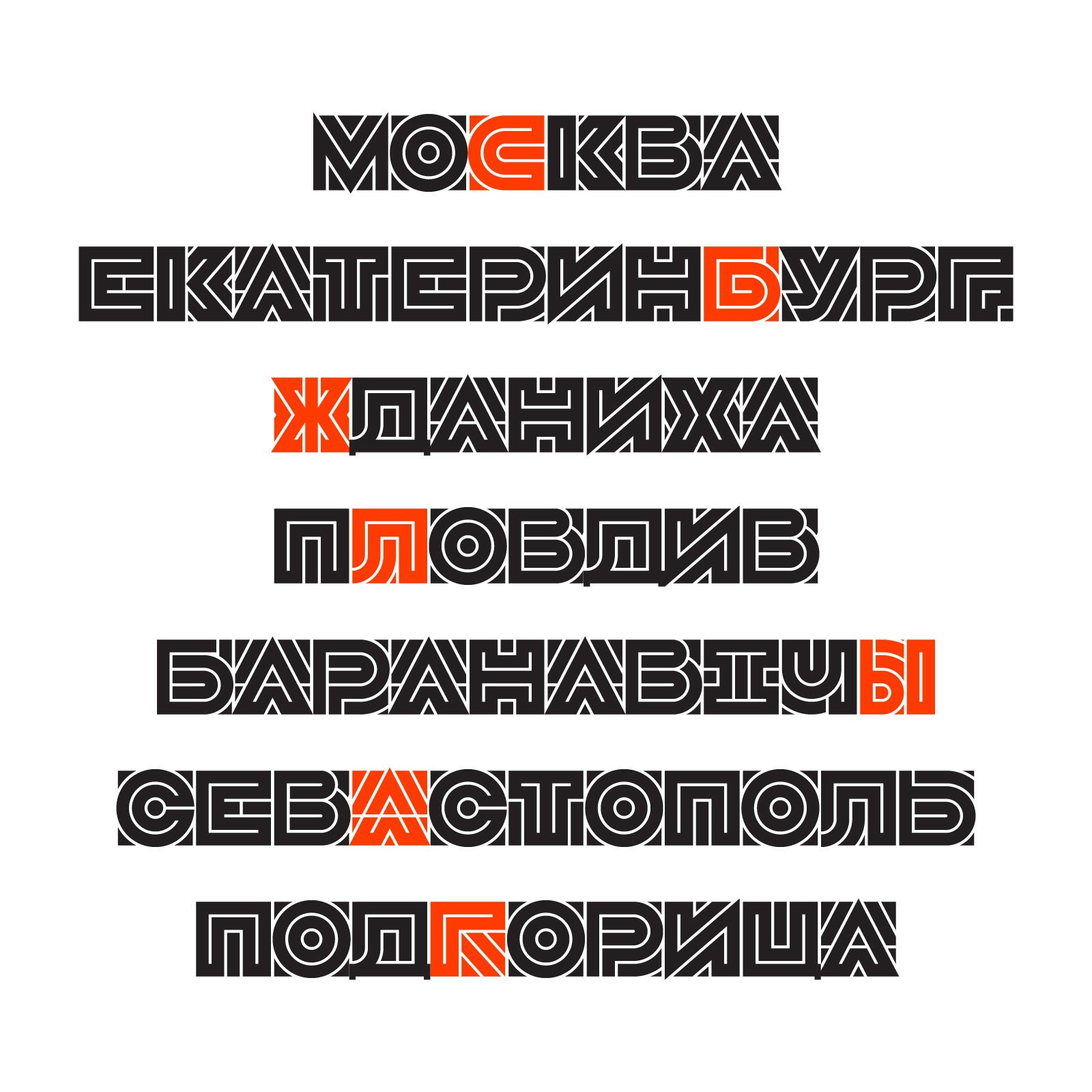 Cyrillic (extended), primary glyphs and Stylistic Alternates.